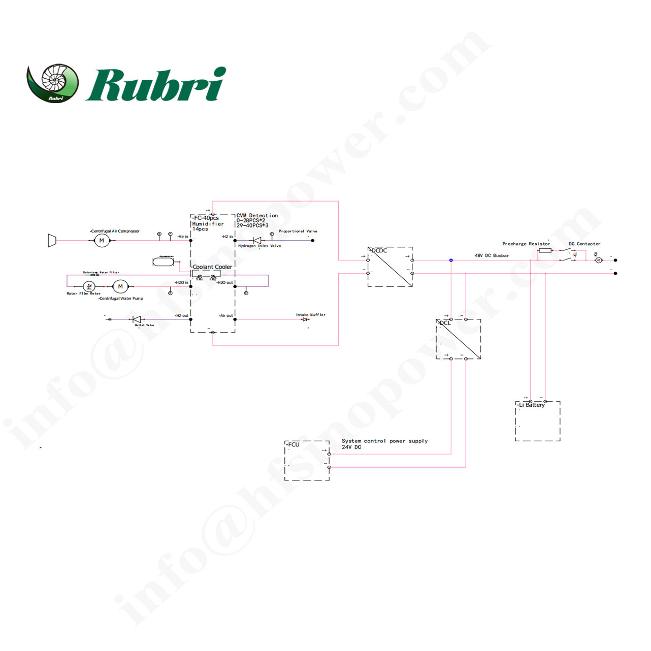 The hydrogen power generation module unit includes a fuel cell, blower, fan, filter, water pump, DC-DC converter, controller, pipelines and cables, etc. After hydrogen enters the hydrogen power generation module unit through the hydrogen supply system, the power generation process is controlled by the controller.