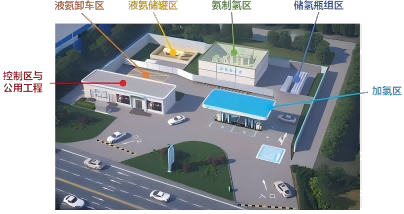 Ammonia terurai dengan cekap menjadi hidrogen dan nitrogen di bawah tindakan pemangkin; selepas deamoniasi dan penulenan, hidrogen berketulenan tinggi diperoleh, memastikan pengeluaran yang selamat. Penggunaan ammonia hijau membolehkan pengeluaran hidrogen sifar karbon. Hidrogen ditekan, disimpan dan diagihkan dengan tepat kepada kenderaan melalui panel kawalan berjujukan dan dispenser hidrogen, memberikan penyelesaian bekalan di tapak yang cekap dan selamat.